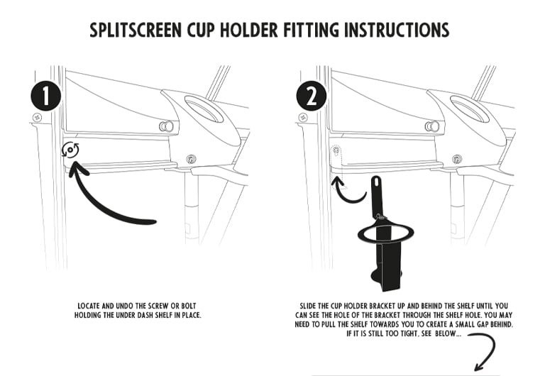 Simple to fit, you just unscrew the existing under dash shelf support screw on the side you wish to fit your cup holder, slide the supporting track behind, then replace the securing screw. Printed fitting instructions will be included with you purchase.