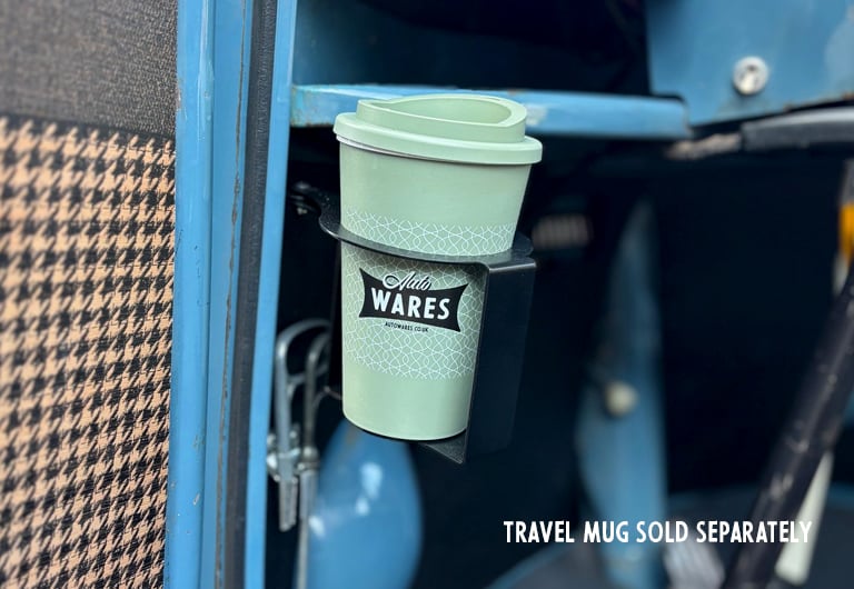 Made from 2mm mild steel and powder coated in satin black, the Auto Wares split screen cup holder fits in minutes without drilling any holes and is hinged so it folds out of sight when not in use.